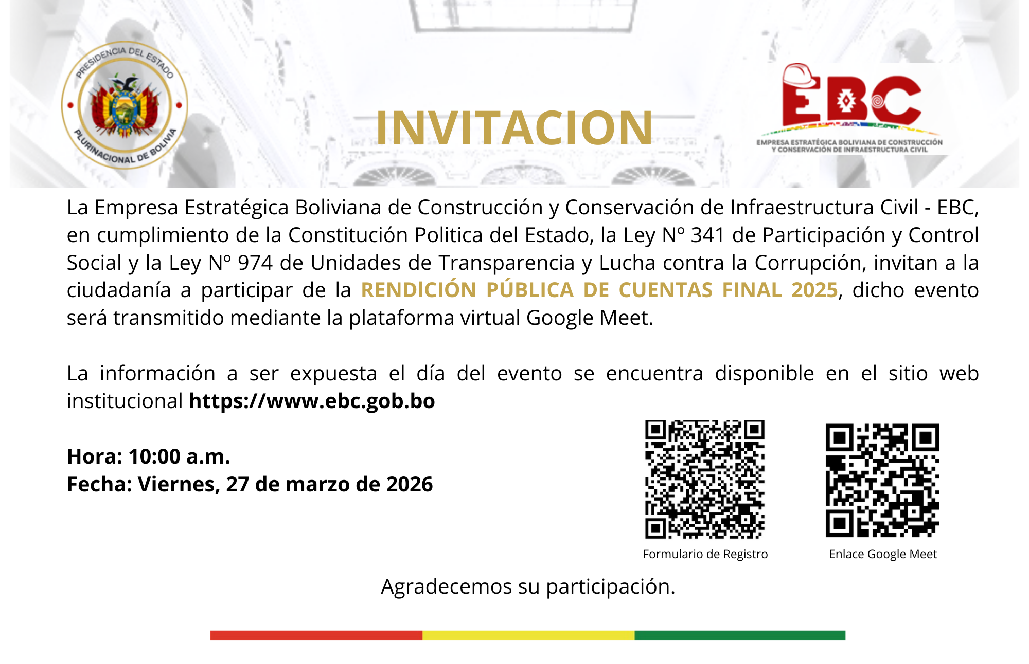 | Rendición Pública de Cuentas Inicial | 2024 | Ver Anexo Invitación Formulario de Inscripción Enlace al Evento | |