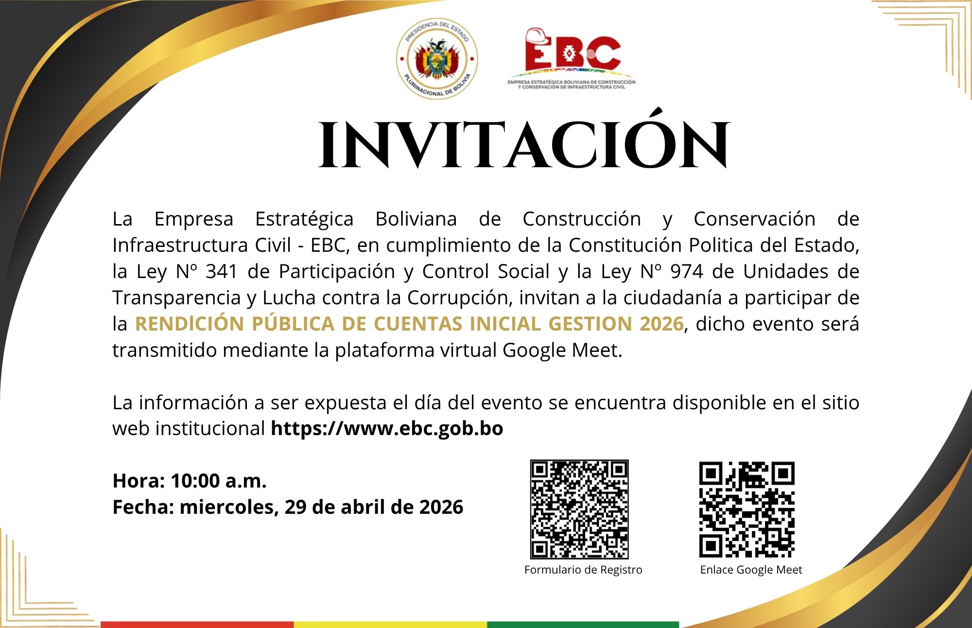 | Rendición Pública de Cuentas Inicial | 2024 | Ver Anexo Invitación Formulario de Inscripción Enlace al Evento | |